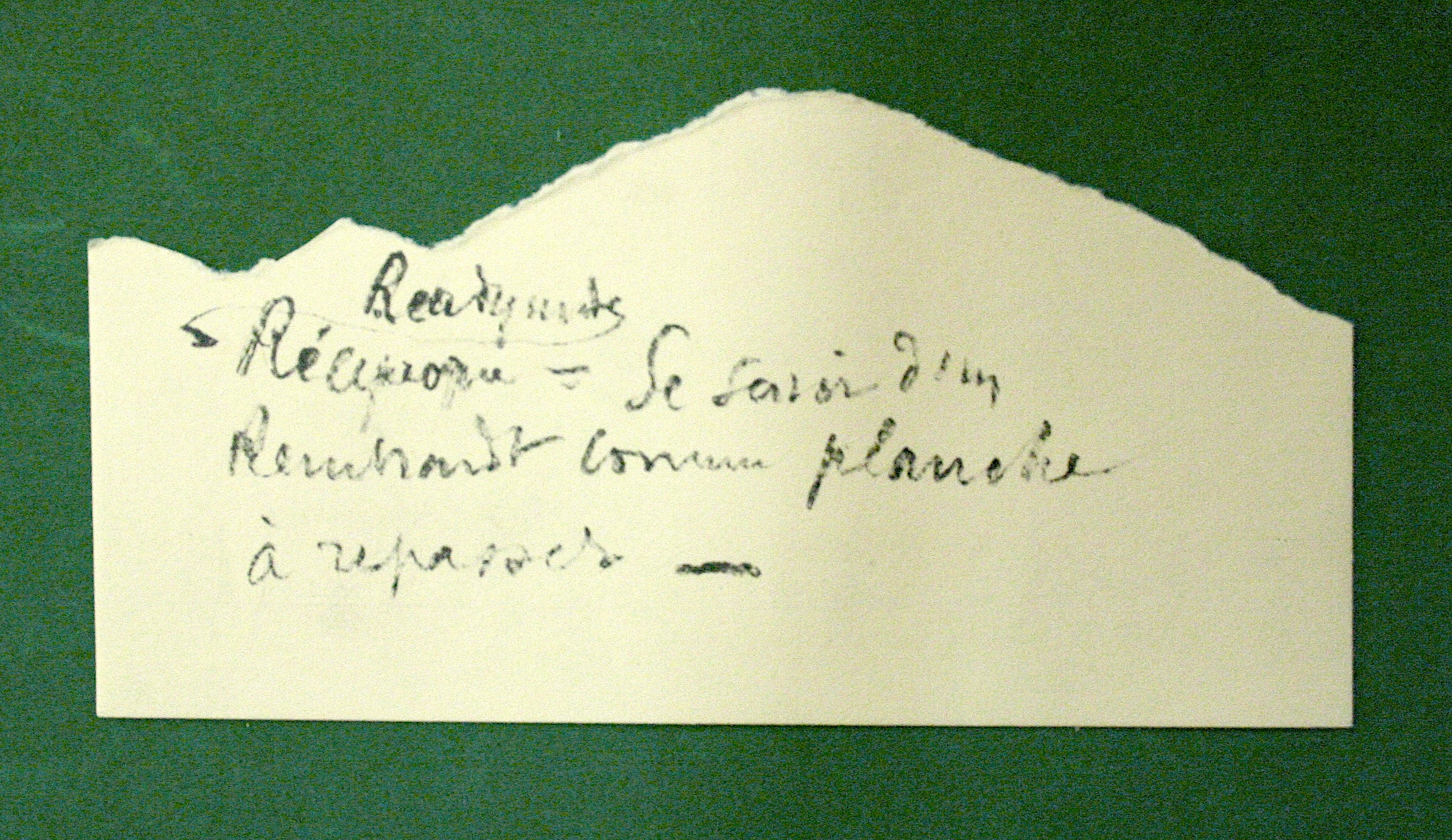 Célibataires machines philosophiques en méditation dans leur mine de sel, en cave d’or - feu | trou | tourne sa roue de moulin | Se servir d’un Rembrandt comme planche à repasser | et repasser sur Courbet | Célibataires, Actéon figés d’avoir vu sans voile la vierge Artémis, aux chiens friands de cerfs | comme elle de sel | Marchande du sel | vierge | Rrose | s’égoutte et hérisson | mur d'or | arrose, asperge | chute à marier | Cascade, la vision, ses désirs | la mariée.